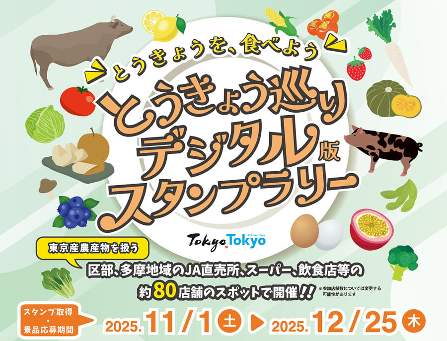 JA直売所や小売店、飲食店においてデジタル版スタンプラリーを実施。スタンプを集めて応募すると抽選により東京産農産物等の加工品が当たる。