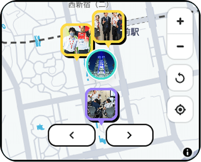 拡大・縮小やポイントの切り替え、現在地表示などの基本操作が可能です。