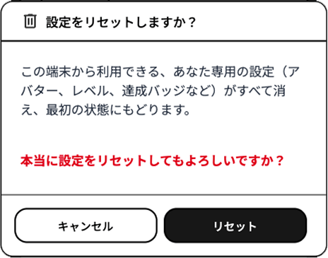 - この端末に保存されているアバター、レベル、達成バッジなどの設定がすべて消え、最初の状態に戻ります。