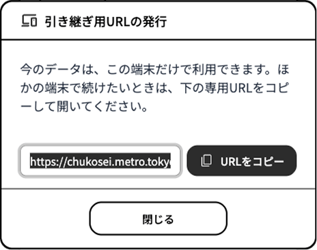 データを別の端末でも使えるように、「引き継ぎ用URL」を発行できます。