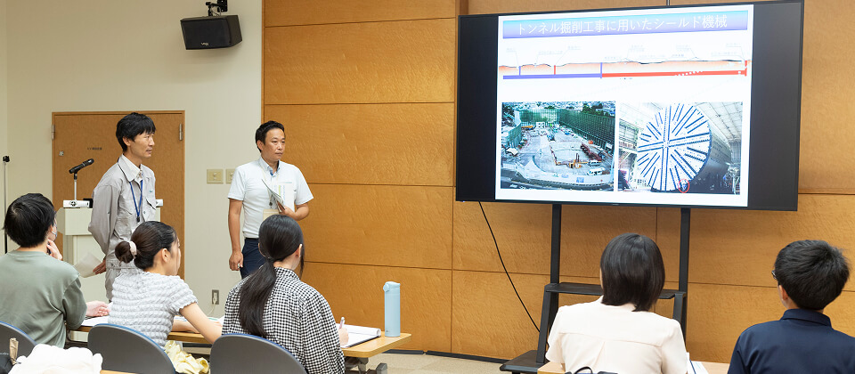北川さん: 総貯留量は143万㎥。25mプールで言えば約4800杯分です。つながると相互調整ができるようになり、たとえば局所的に1時間100㎜を超える雨が降っても、街に水があふれない地下調節池としての効果が見込まれています。工事は2017年から始まっており、2027年度の取水開始を目指しています。環状七号線の直径12.5mよりもさらに大きい、直径13.94mあるシールドマシンという機械で、土を削りながら掘り進めています。