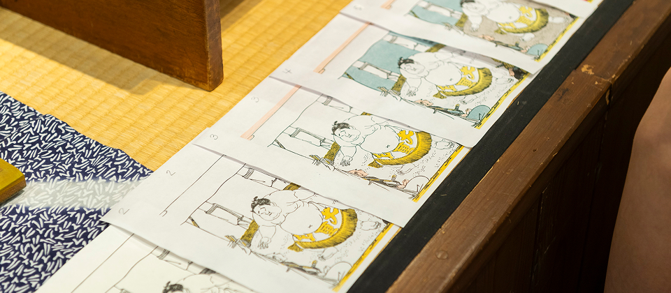 田埜さん: 江戸木版画を1つ作るためには、摺師のほかに、彫師(ほりし)、絵師という3人の職人が必要で、それぞれが分業制です。さらにどんな木版画にするかをプロデュースする版元(はんもと)がいます。版元が摺師や彫師、絵師とそれぞれコミュニケーションを取って仕事を進めていくため、摺師と絵師が話し合うことはありません。高橋工房は摺師と版元がいる体制で、私のほかに親方である6代目の高橋と兄弟子の摺師がいます。