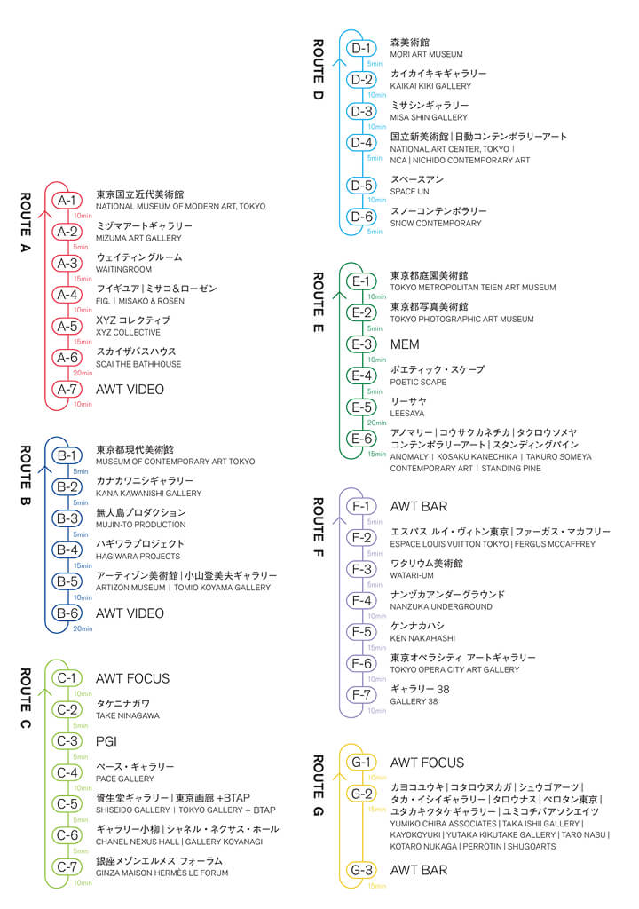塩見さん: Ms. Shiomi: 2025年の場合、「アートウィーク東京」の開催期間は11月5日(水)~9日(日)の5日間ですが、7日(金)~9日(日)の3日間は、7ルート(※)設定された「AWT BUS」という無料のシャトルバスで、都内のアートスペースを巡ることができました。自分の好きなところで降りて美術館やギャラリーなどでアートを鑑賞し、またバスに乗って次のところに行ける、という感じです。みんながバスで移動していろいろなところに行く、という意味で「モビールプロジェクト」なんです。バスに乗れば次々とアートスペースに連れて行ってくれるので、美術鑑賞初心者の方にもおすすめです。皆さんアートスペースを巡るという同じ目的を持った人がバスに乗っているので、知らない人にもちょっと勇気を出せば「今の展覧会、どうでした?」みたいに話しかけることができる、カジュアルな雰囲気になっています。