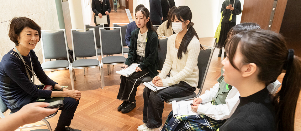 塩見さん: Ms. Shiomi: 小学生や中高生である皆さんは、「未来」そのものですよね。未来を生きる皆さんに早いうちから芸術文化に触れる楽しさを知っていただき、その楽しみをずっと持ち続けていただくことは、とても大事なことだと思います。皆さんの人生を豊かにすることはもちろんですが、「文化を守る」という意味でもとても大切なんです。文化は守らなければ奪い取られてしまう可能性のあるものだ、ということが歴史を見てもわかります。戦争などが良い例ですよね。物理的に作品を守ることもそうですが、文化が持っているさまざまな力、たとえばいろいろな意見を受け入れる力や、何か知らないものの扉を開いてくれる力、そうした文化を守り続けていくために、未来である皆さんを対象としたガイドツアー、ワークショップを行っています。