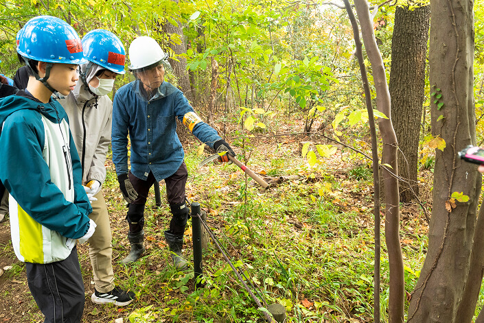 宮谷さん: Mr. Miyagai: 学生の方を対象に「東京グリーン・キャンパス・プログラム」、また企業や団体の方を対象に「東京グリーンシップ・アクション」という緑地保全活動のプログラムを提供しています。「東京グリーンシップ・アクション」では、企業の社員やご家族が 枯木の伐採や希少種の保護、外来種の対策などの活動を行います。この場合は企業や団体の方には費用を一部負担いただいて保全活動をサポートしてもらっています。