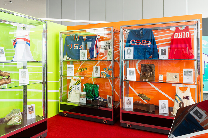 世界中のアスリートからユニフォームやシューズを寄贈してもらうかたちをとってMOWAができました。現在は陸上競技の歴史を知るインターネット上の3Dバーチャル博物館としてオープンしているほか、今回のように世界各国で展示を開いています。
