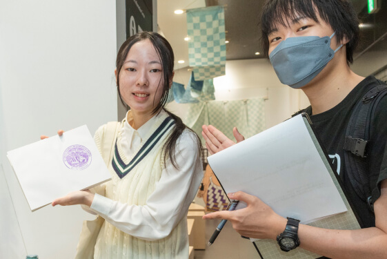 金さん: Ms. Kon: その方が日本人なのか外国人なのか、日本人でもどこからいらしたのか、お若い方なのかご高齢の方なのか、それぞれ対応は異なってきます。たとえばご高齢の方だとスマホなどの電子端末を使われない方もいらっしゃるので、その場合は紙の地図にしっかりと印をつけてお渡しします。長期滞在と短期滞在でもご相談の内容は変わってきます。短期の方はご自身である程度計画を立てられてきていて、アクセスを聞かれることが多いのですが、長期の方は「1カ月いるんだけど、東京で何をしたらいい?何ができるの?」という、非常にざっくりとしたところから始まることもあります。その場合はたくさんお話をしてその方の興味・関心などを引き出しながら、いろいろとご提案をしていきます。私たち自身が、常にご提案できる情報をたくさん持っていることが必要なので、日頃からアンテナを張り巡らせています。印象に残っているご相談では、「書道体験をして友だちに持って帰りたいんだけど、自分で書くのではなく、誰かに書いて欲しい」というもの。何とか調べてご案内しました!